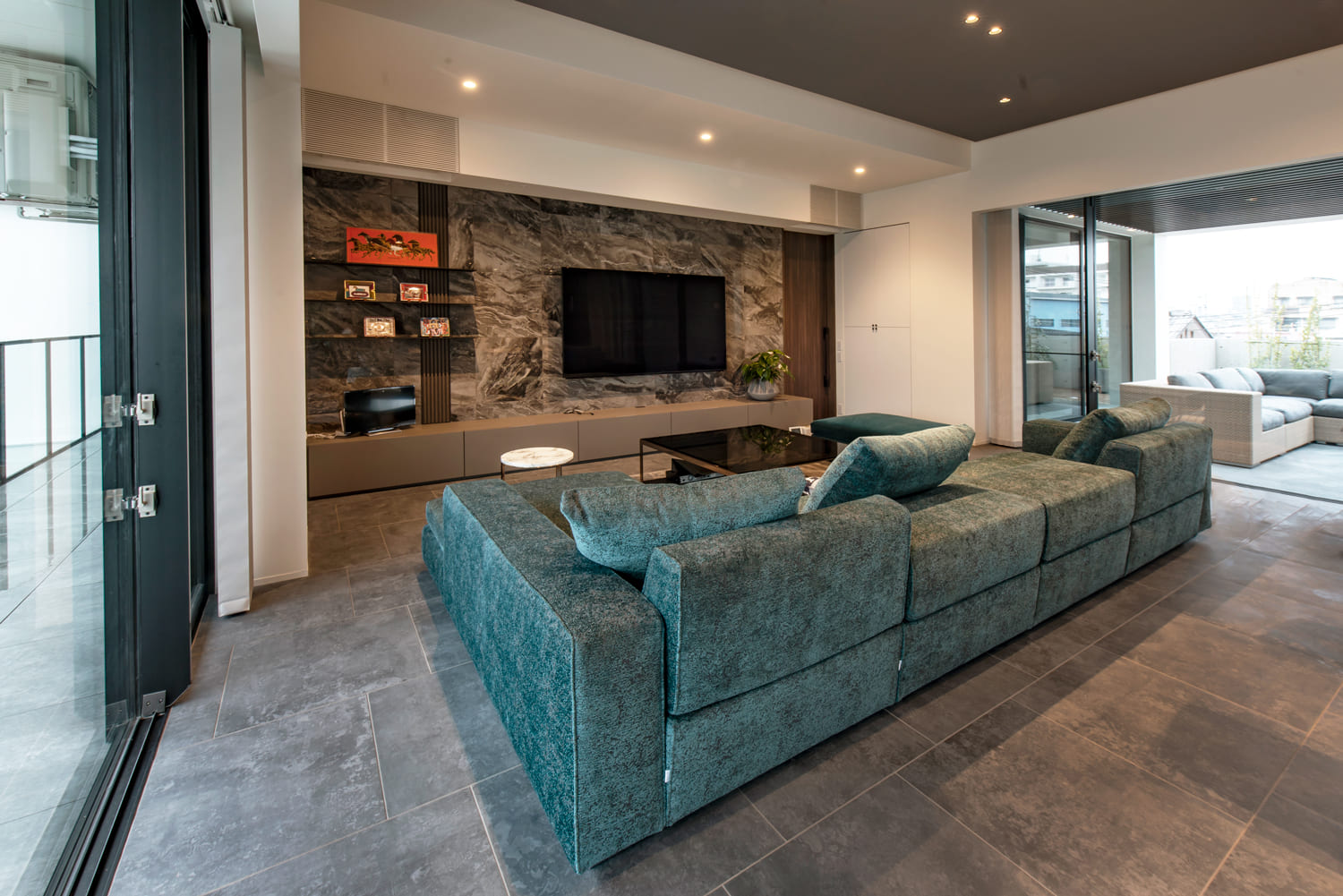 リビングの大窓を開け放てば、そこは、内と外がシームレスに繋がる「アウトドアリビング」。