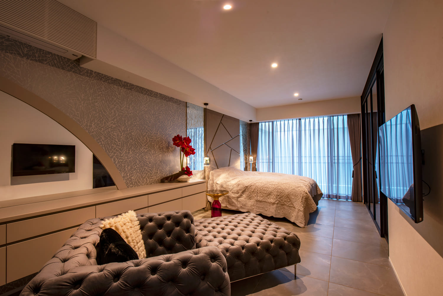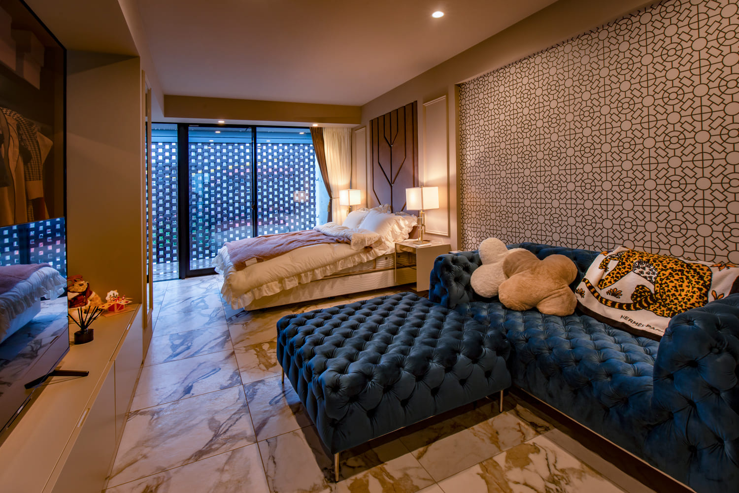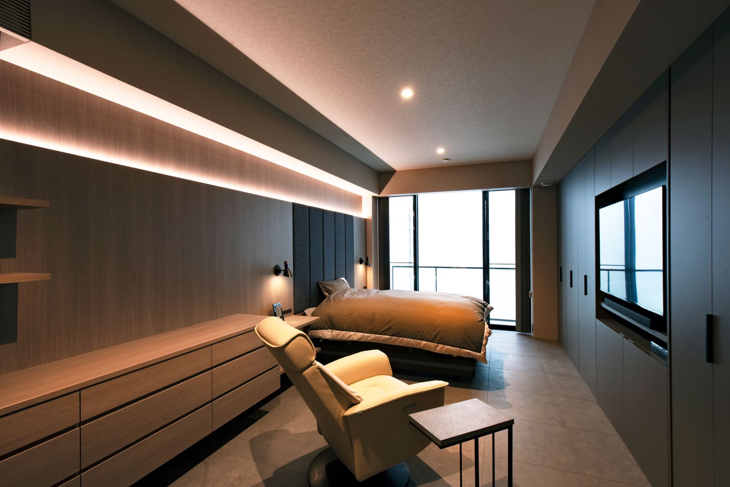 ベッドルーム】上質な闇と光が、眠りを誘う。一日の終わりを包み込む、静寂の寝室