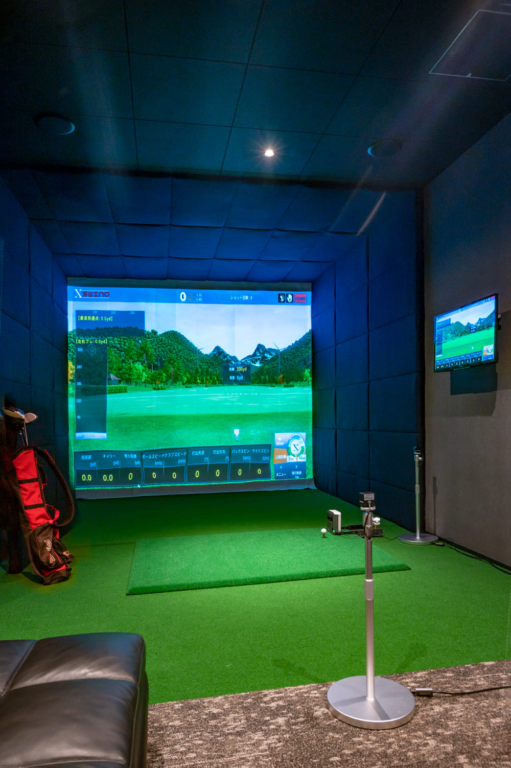 この邸宅には、天候や時間を一切気にすることなく、好きな時に好きなだけ没頭できる、本格的なゴルフシミュレーターの空間が。