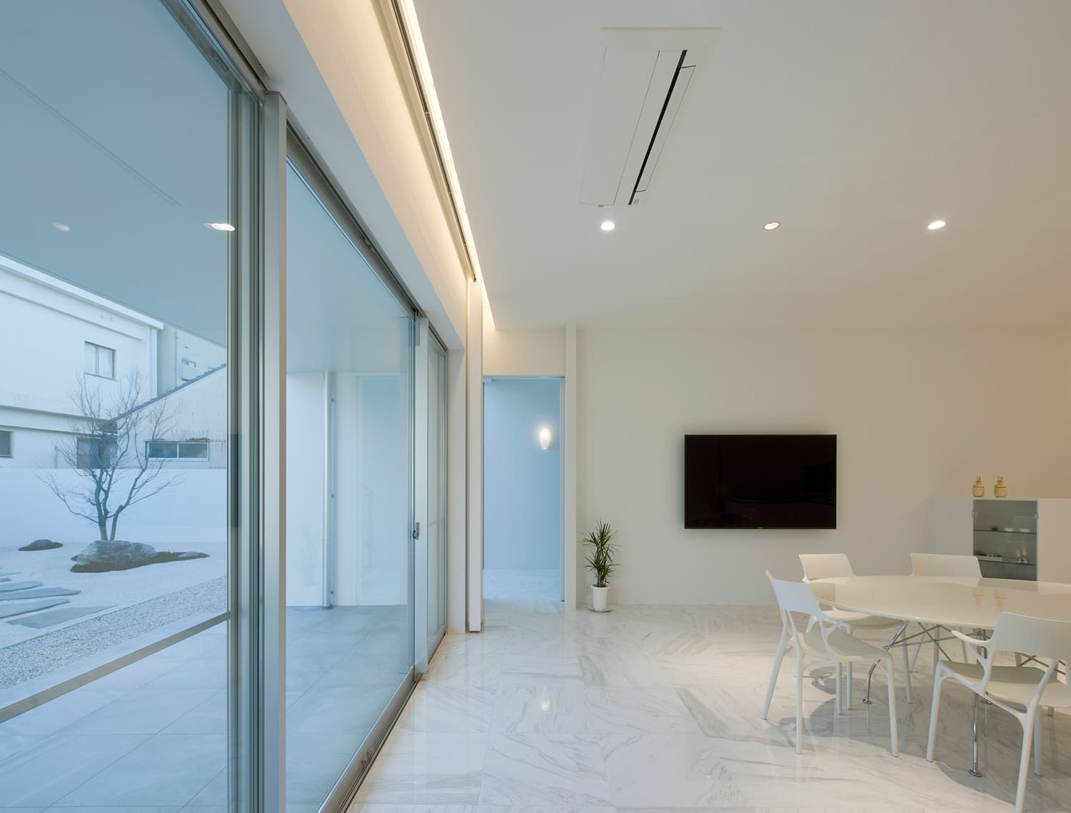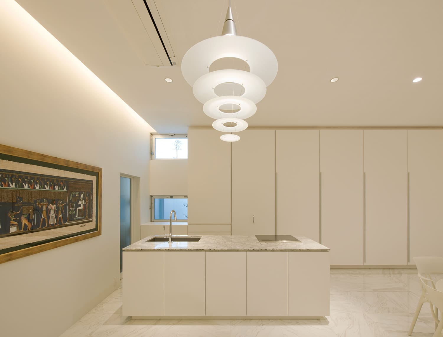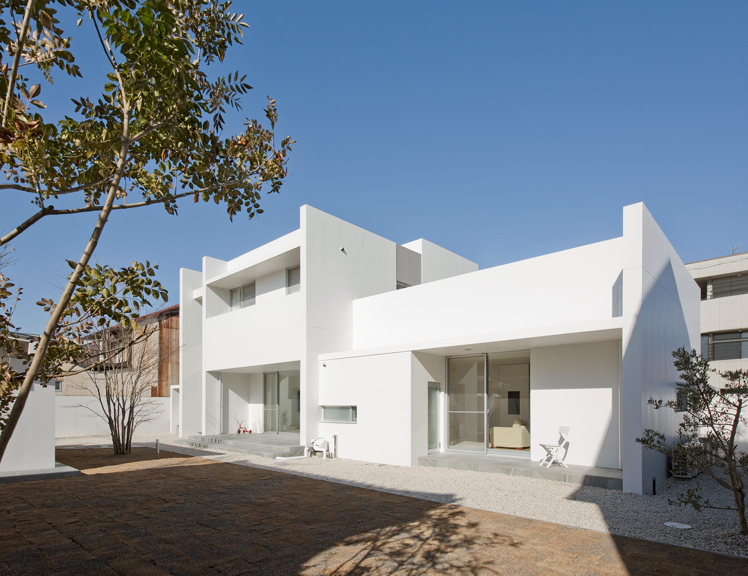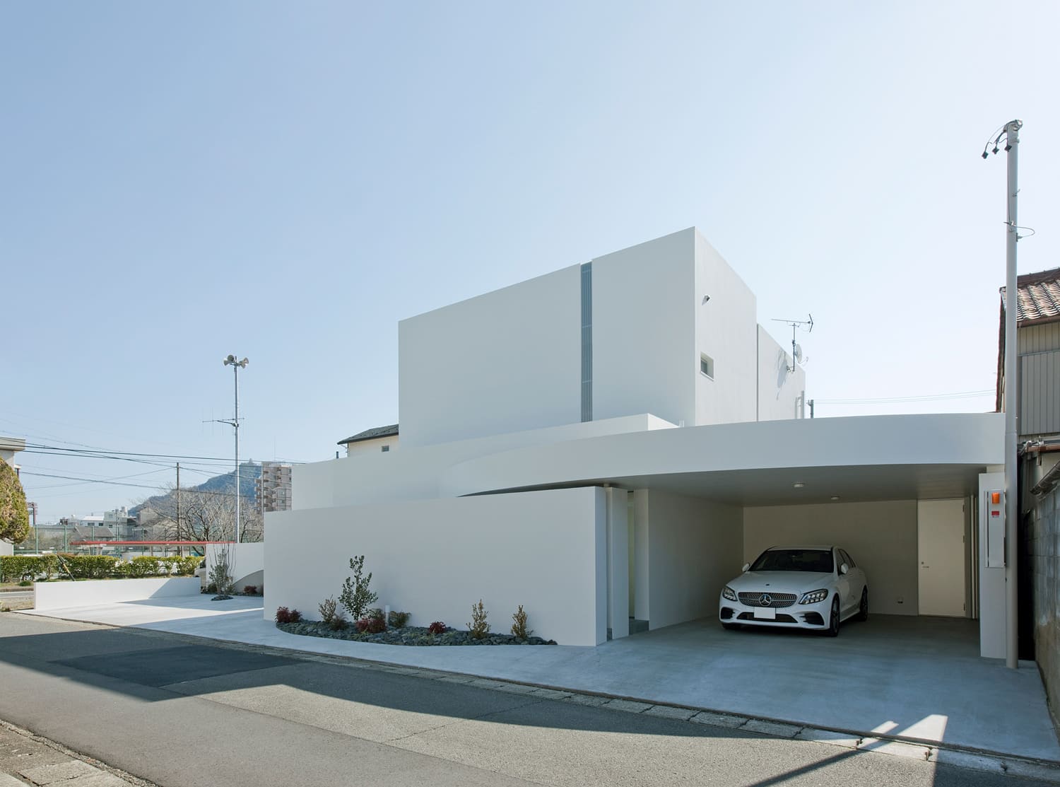 まるで、光と影で創られた白い彫刻作品。この住まいは、生活の器であると同時に、それ自体が息をのむほどに美しい、一つのアートです。