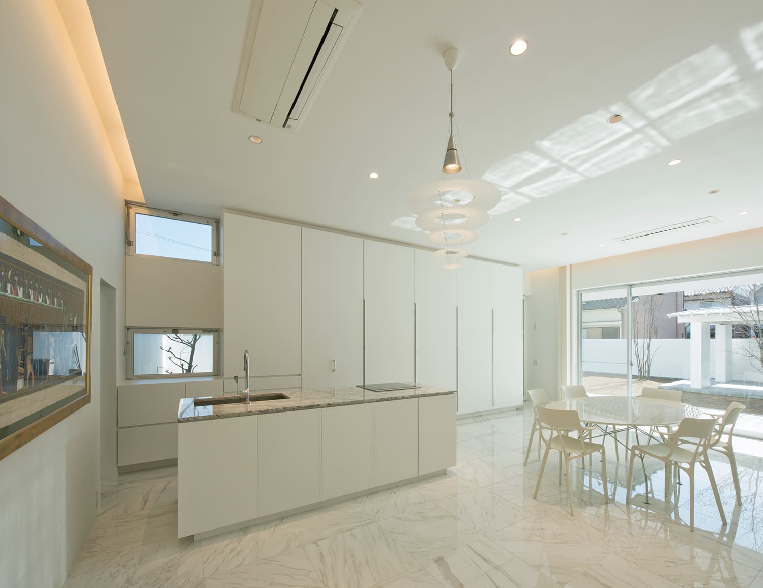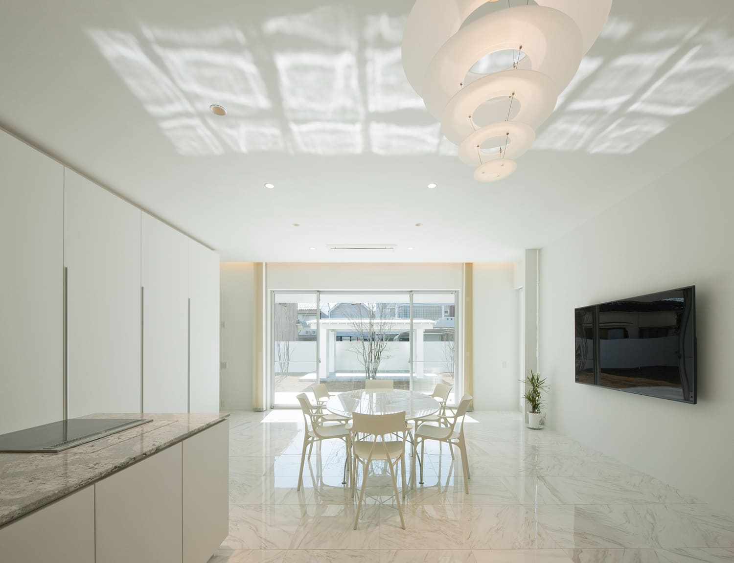 床も壁も天井も、そして家具までも、すべてが白で統一された、光あふれるダイニングスペース。