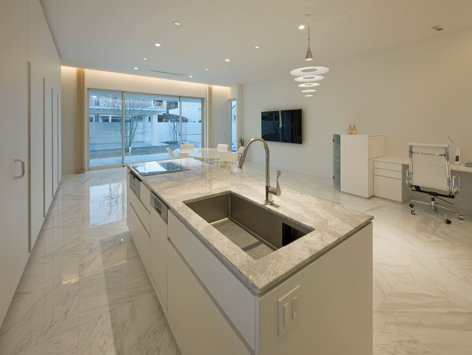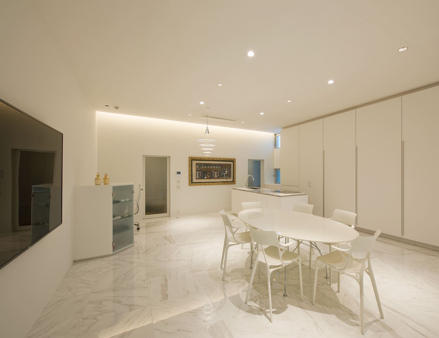 すべてを白で統一することで、空間の広がりと、非日常的な美しさを際立たせています。