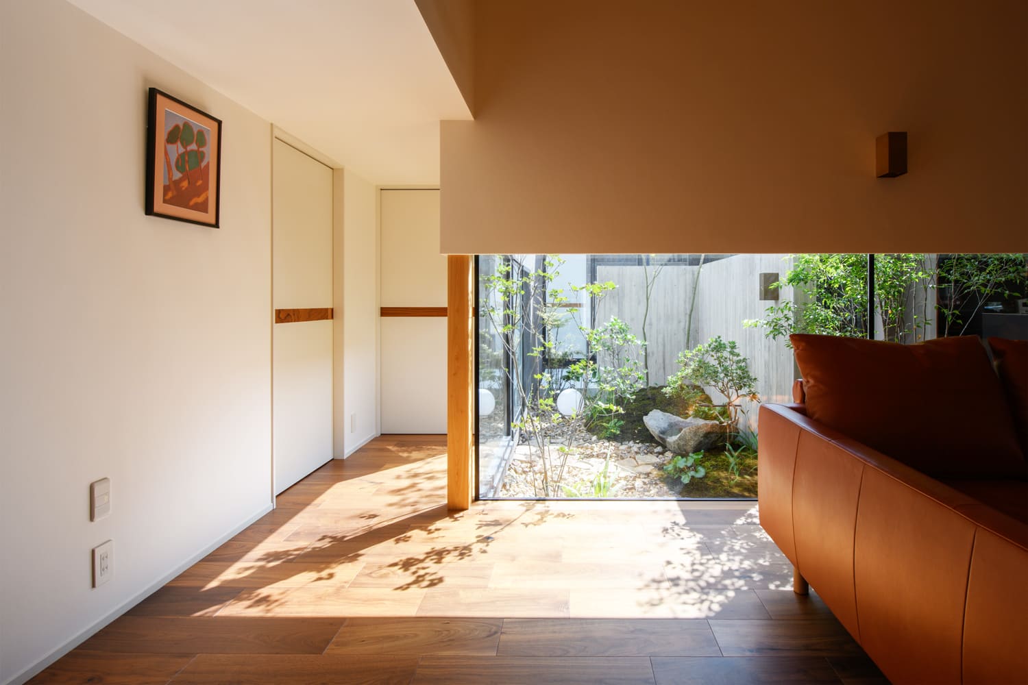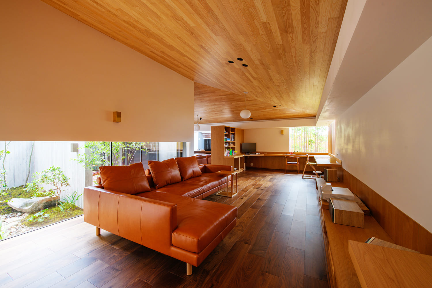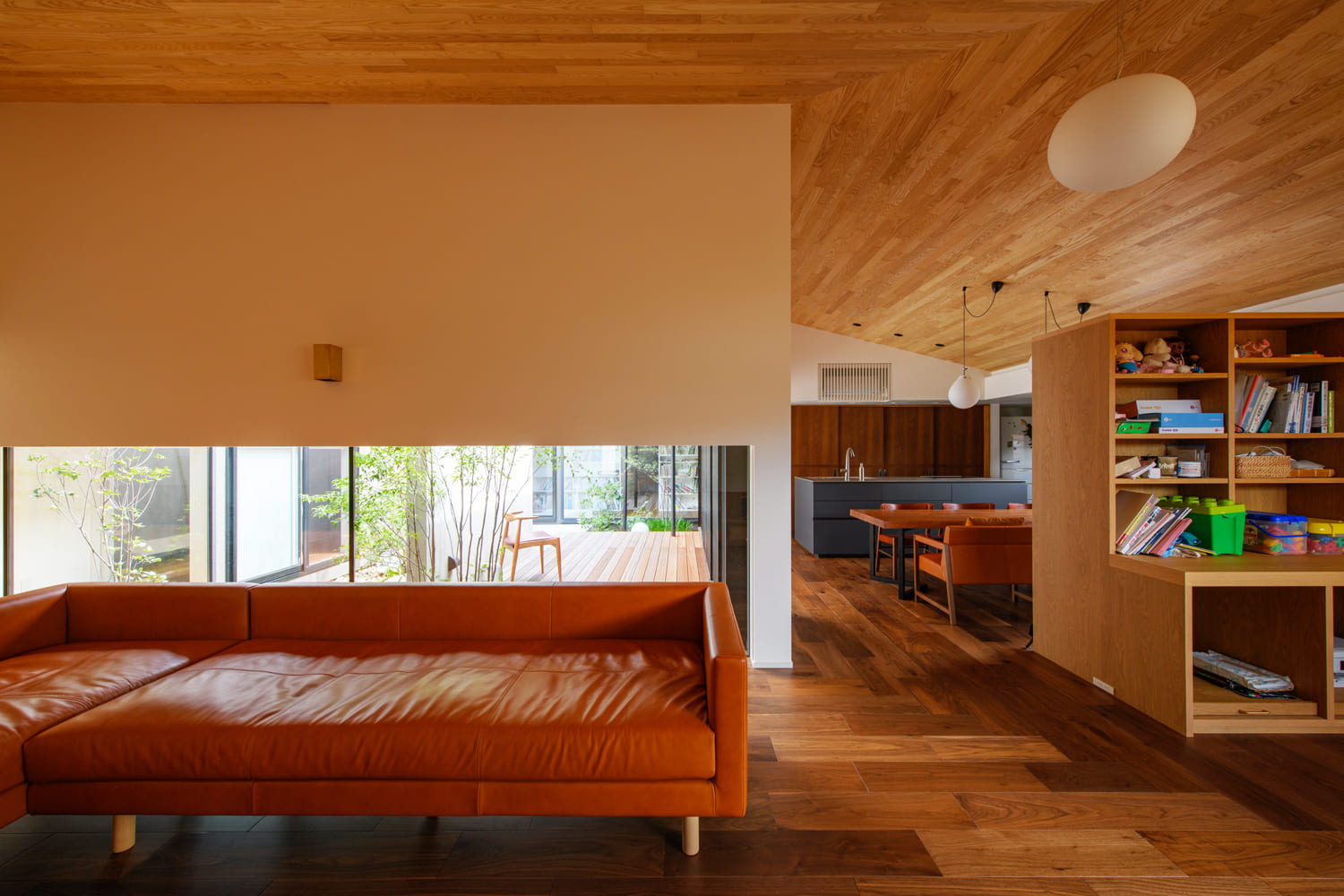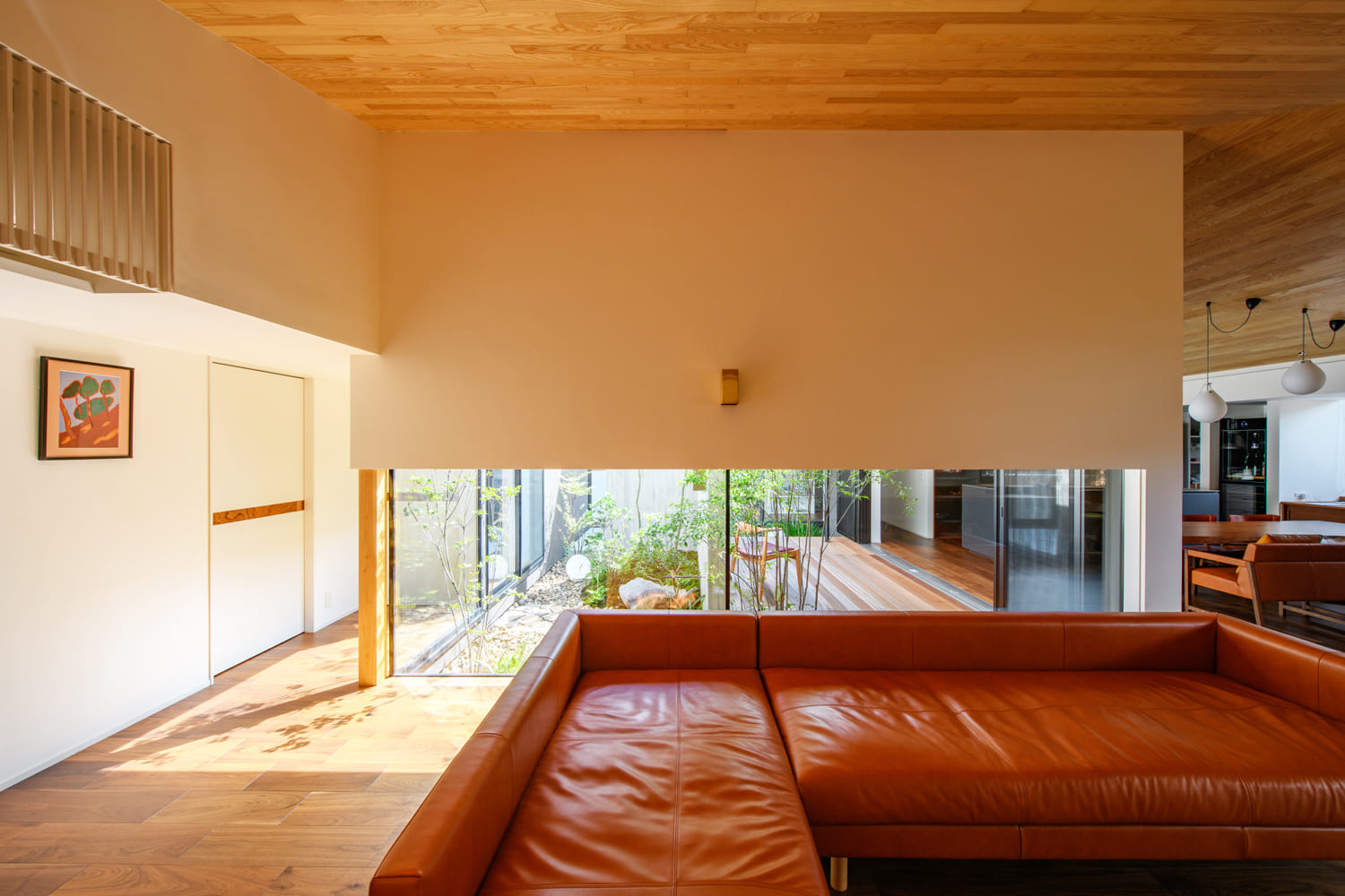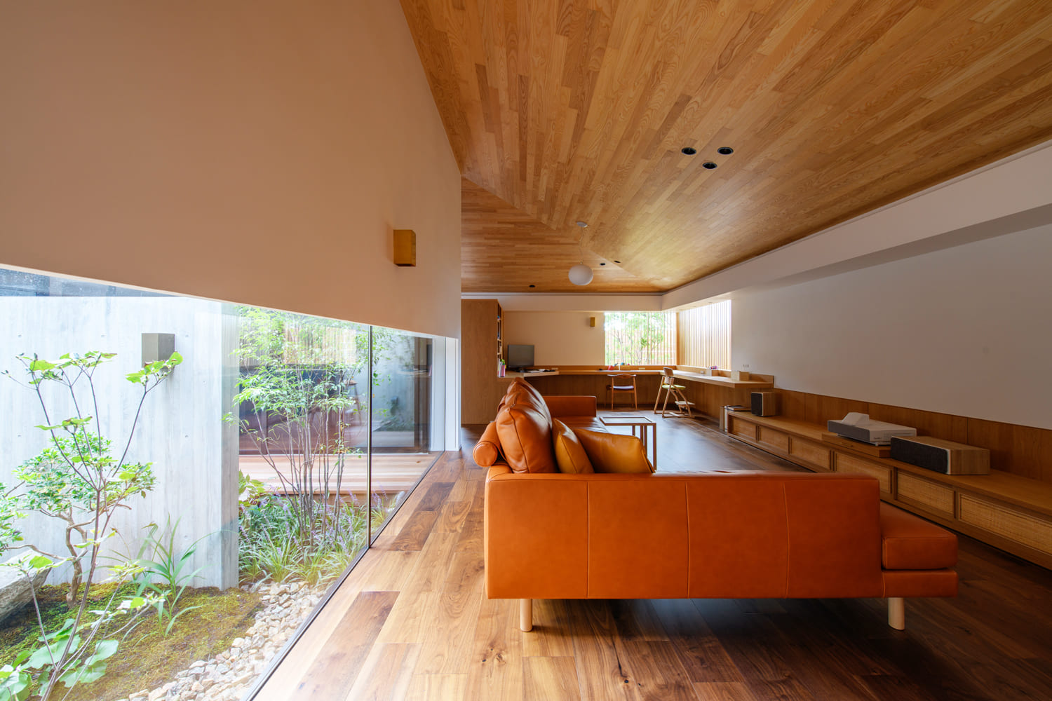 家の主要な空間がすべてこの庭に面することで、どこにいても自然の気配を感じ、開放感に満たされた暮らしを送ることができます