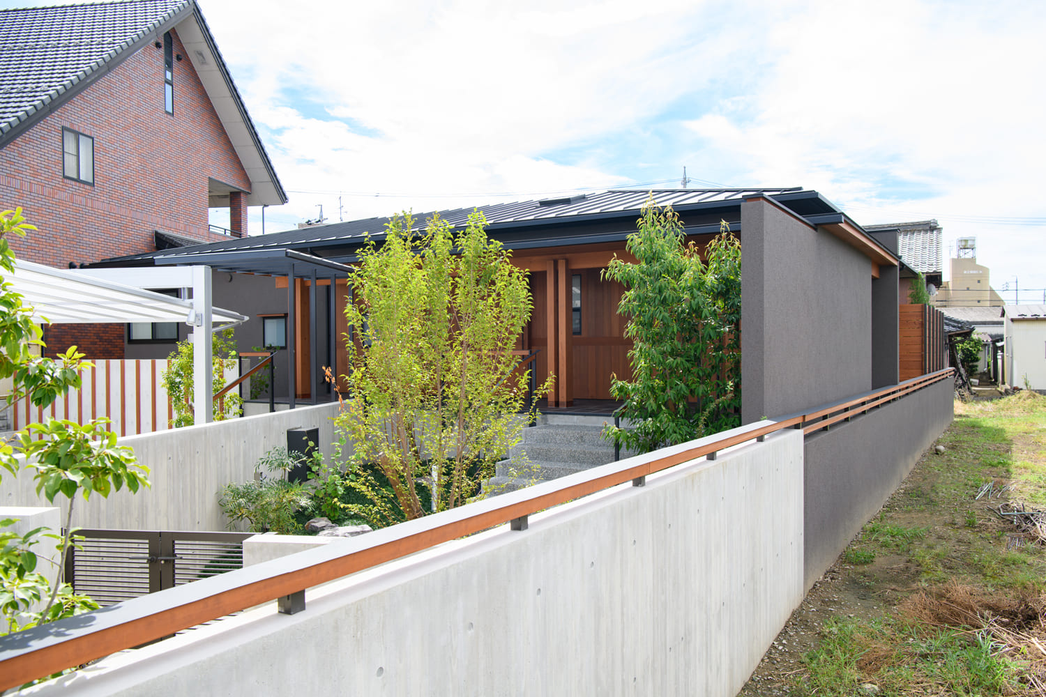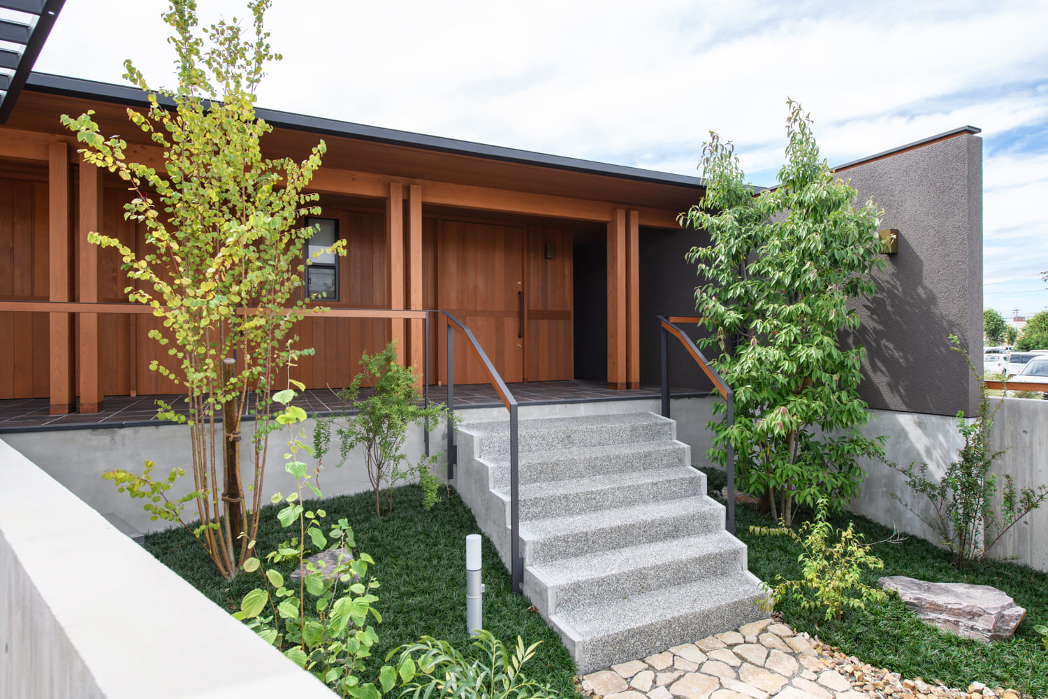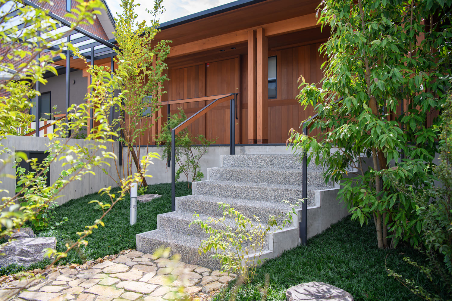 まるで、緑の中に佇む高級旅館。この住まいは、訪れる人を日常から非日常へと誘う、静かで品格のあるアプローチから始まります。