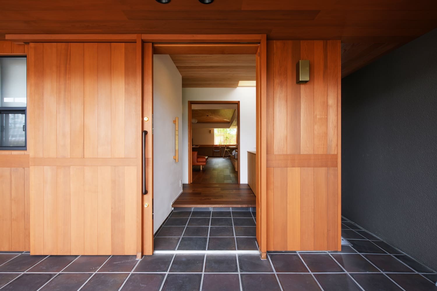 玄関】『おかえりなさい』と、木の香りがする。旅館のような、広々としたおもてなしの空間。