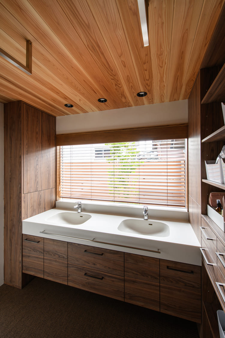 洗面台】朝の時間が、もっと好きになる。庭の緑を眺める、ホテルライクなパウダールーム。