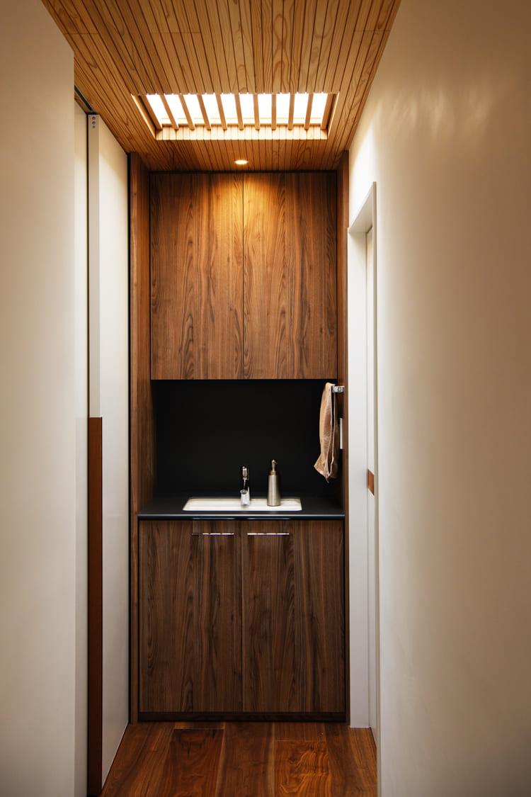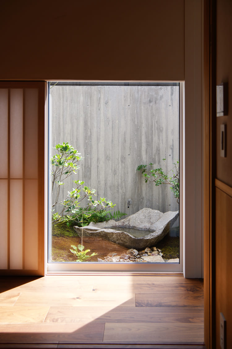 ここからも窓の外に坪庭の緑を眺めることができ、朝の忙しい時間も、優雅な気持ちで始められます。