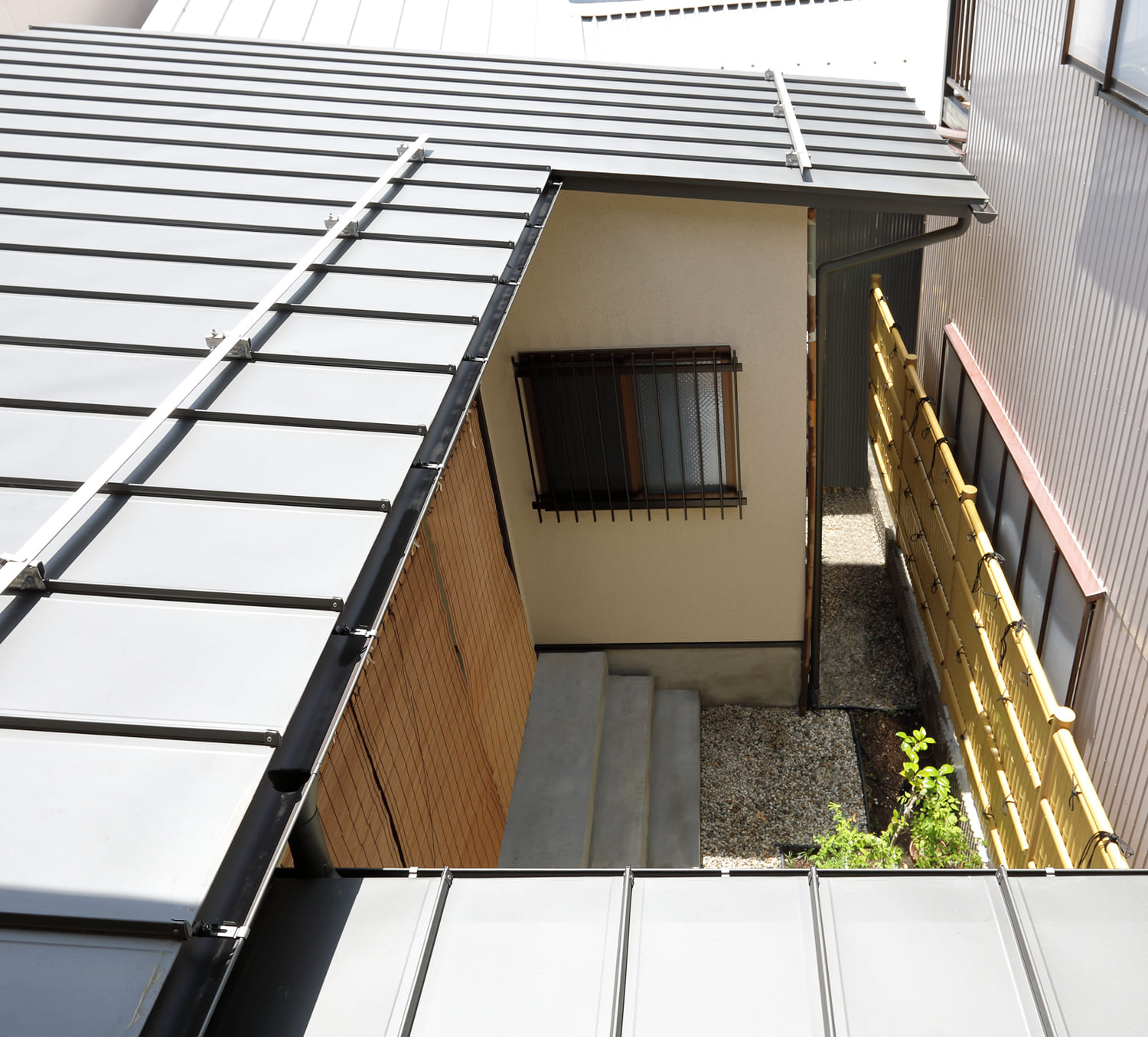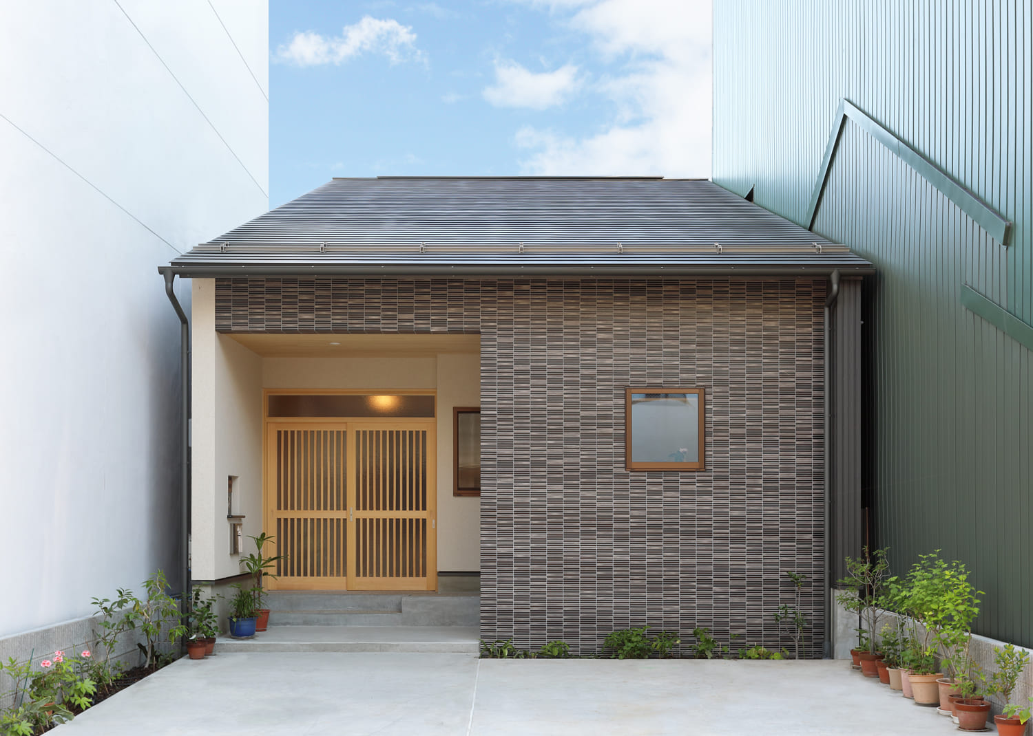 この住まいの魅力は、道路から玄関へと続く、美しい「路地」にあります。