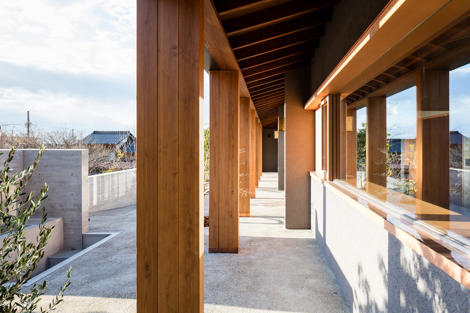 家の内外を繋ぐ、長く美しい回廊そのものが、訪れる人を、日常から、特別な世界へと誘う、壮大なアプローチとなります。