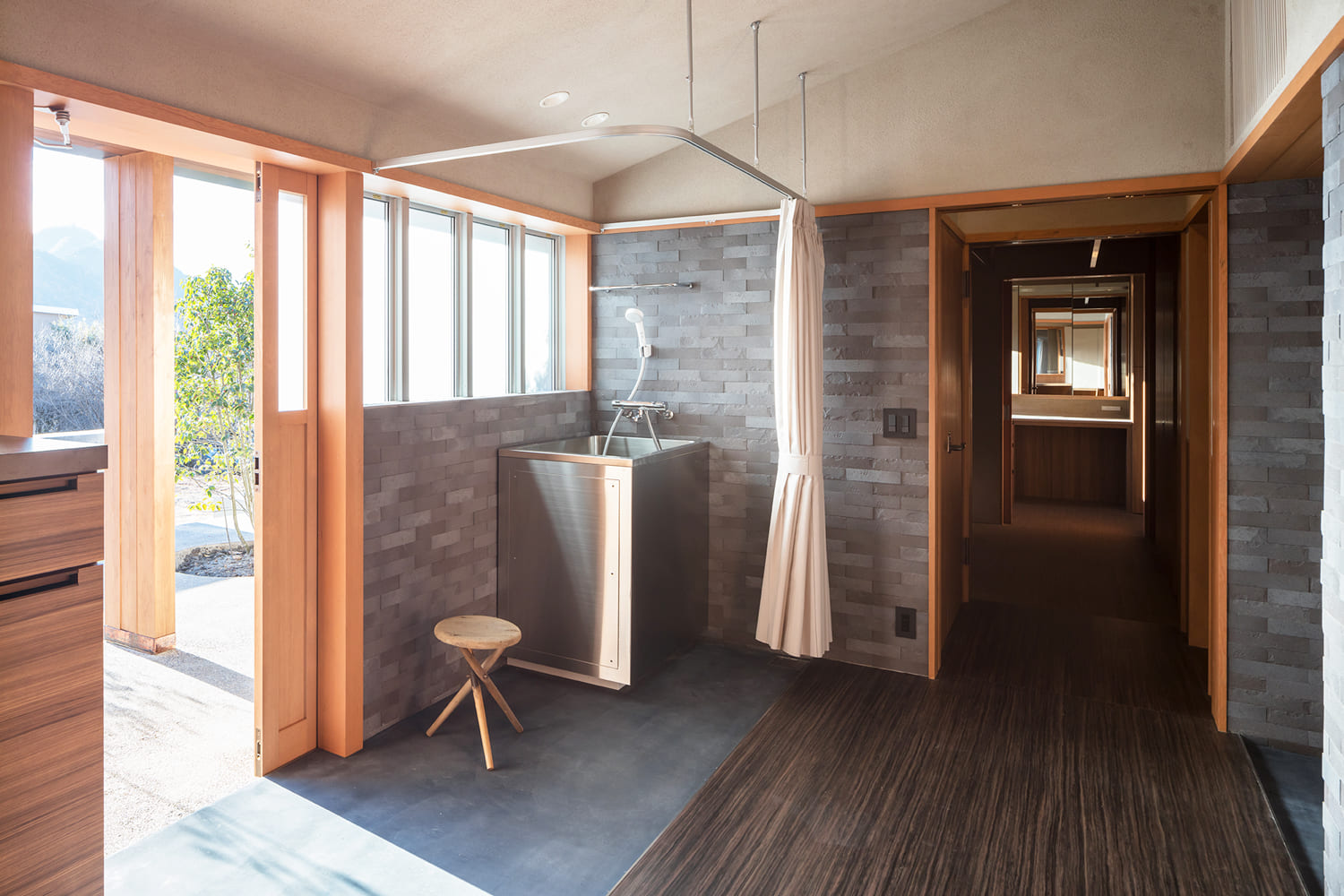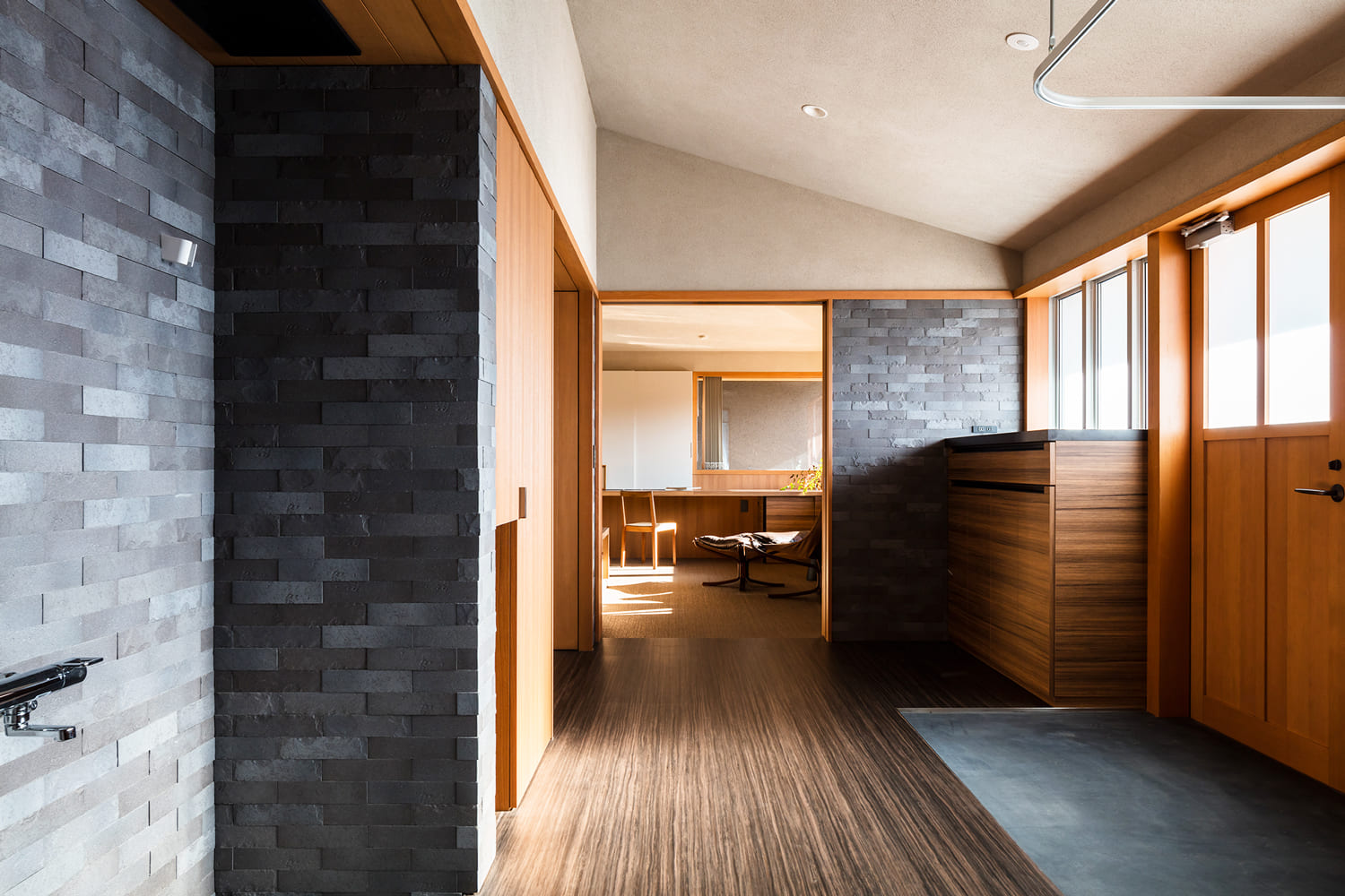 無機質になりがちな空間が、この壁があるだけで、まるで洞窟の中のような、落ち着きと、静けさに満ちた特別な場所に変わります。