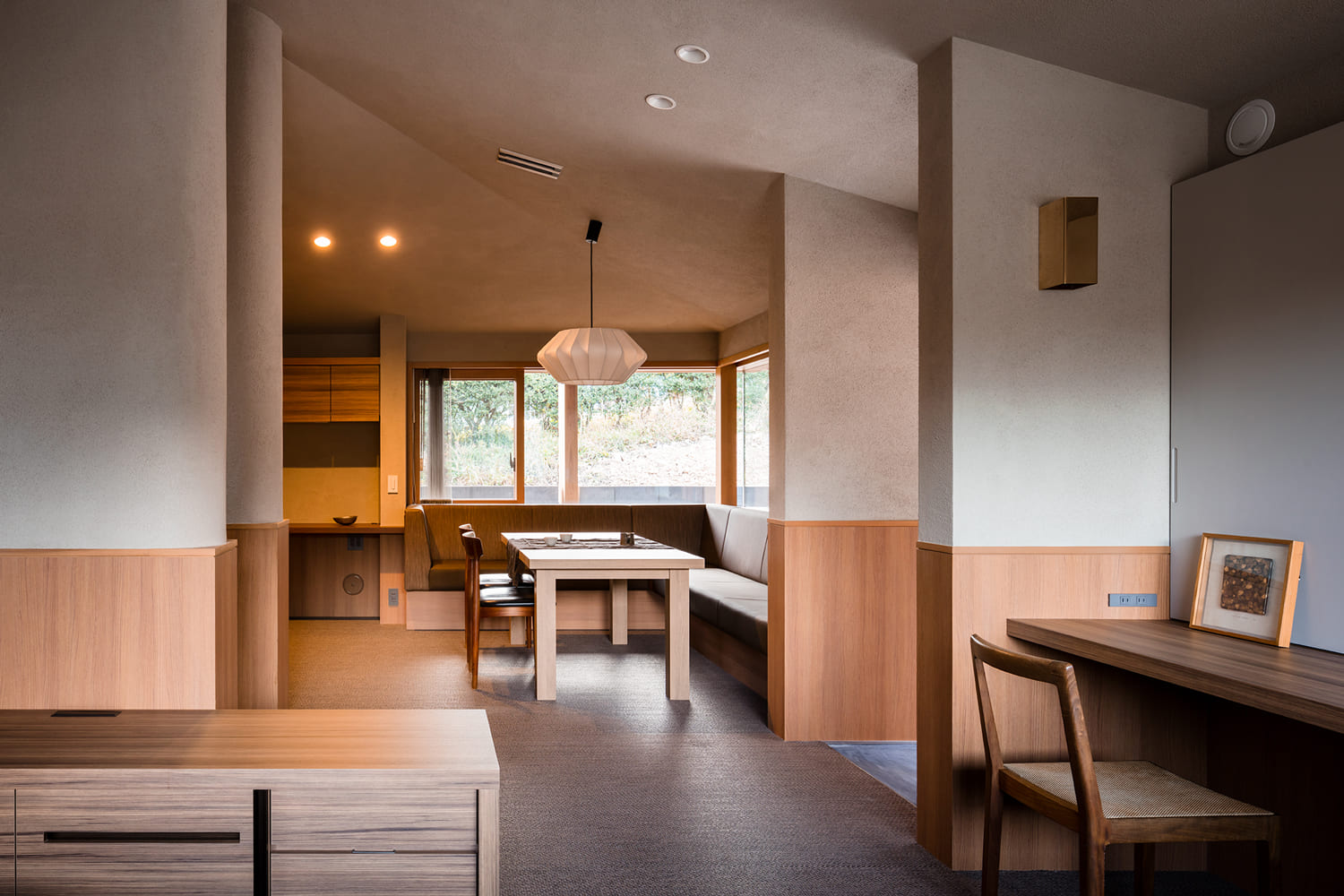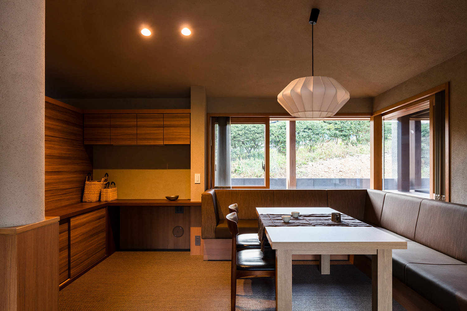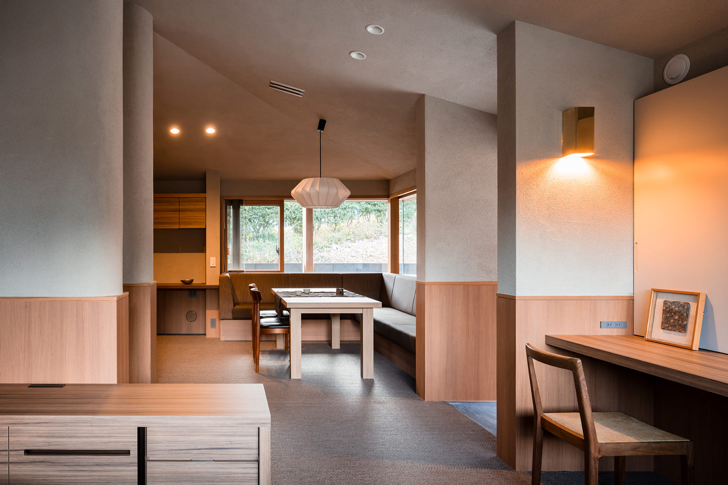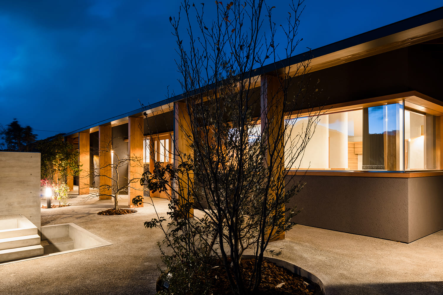 長く伸びやかな平屋の建物は、風景に溶け込むように佇み、一歩中へ入れば、そこは光と、木の温もりと、静寂に満たされた、特別な時間が流れる空間。