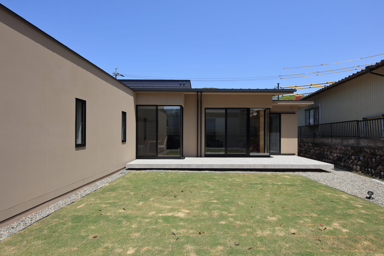 この家の暮らしの中心は、建物に囲まれた、美しい芝生の中庭です。リビングからも、ダイニングからも、この庭を眺めることができ、いつでも自然を身近に感じることができます。お子様が走り回ったり、友人を招いてバーベキューをしたり。ここは、家族の笑顔が集まる、空の下の、もう一つのリビングです。