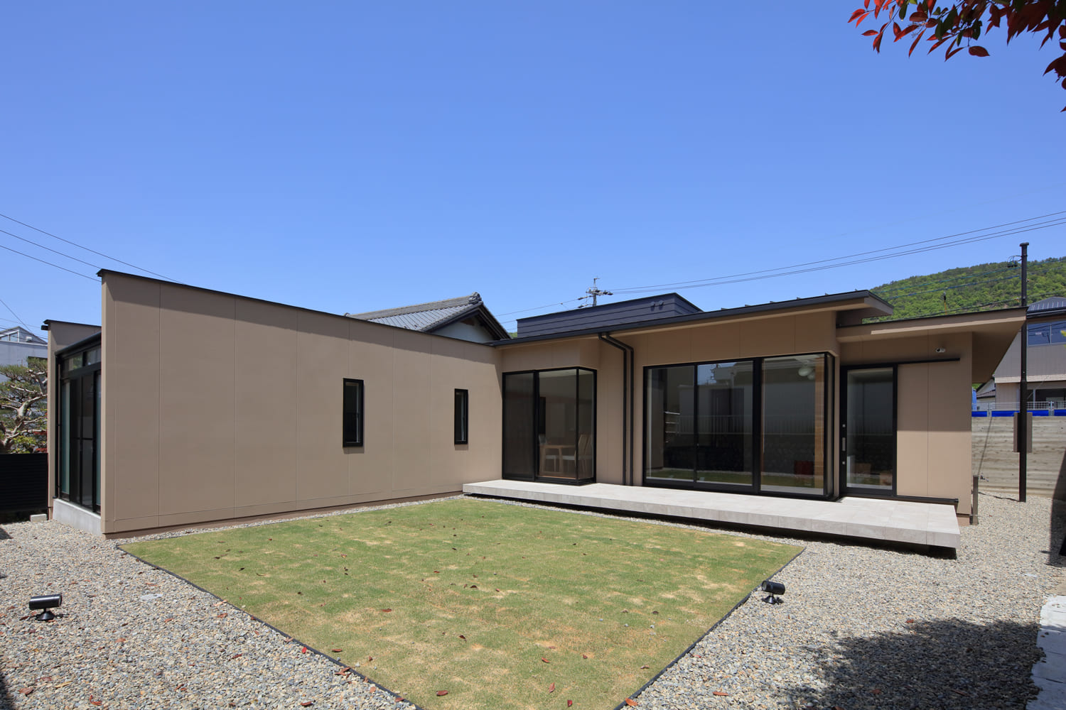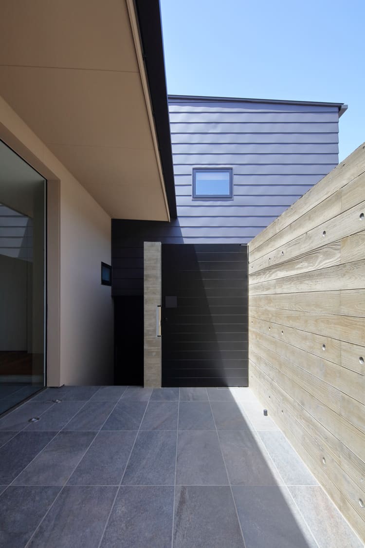 【外観】閉じて守り、内に開く。二つの建物が織りなす、静かなる邸宅。