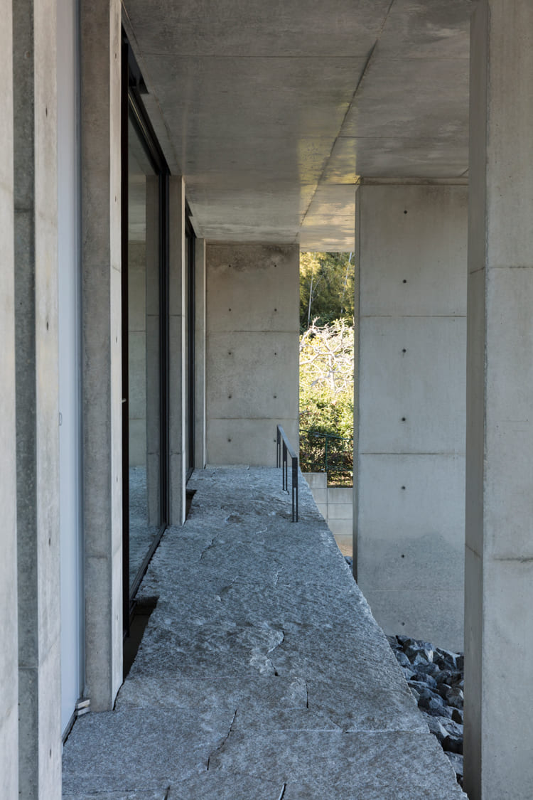 【廊下】ただの通路ではない、美術館の回廊。壁の素材感が、空間に品格を与える。