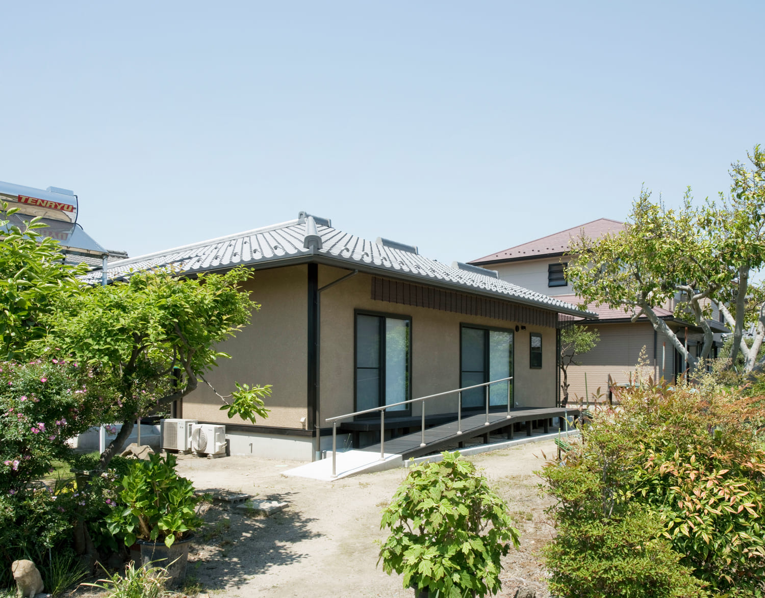 この住まいの魅力は、建物を優しく囲む、美しい日本庭園です。リビングからも、和室からも、廊下からも。家のどこにいても、手入れの行き届いた木々の緑や、季節の花々を眺めることができます。この庭があることで、日々の暮らしが、より豊かで、潤いのあるものになります。