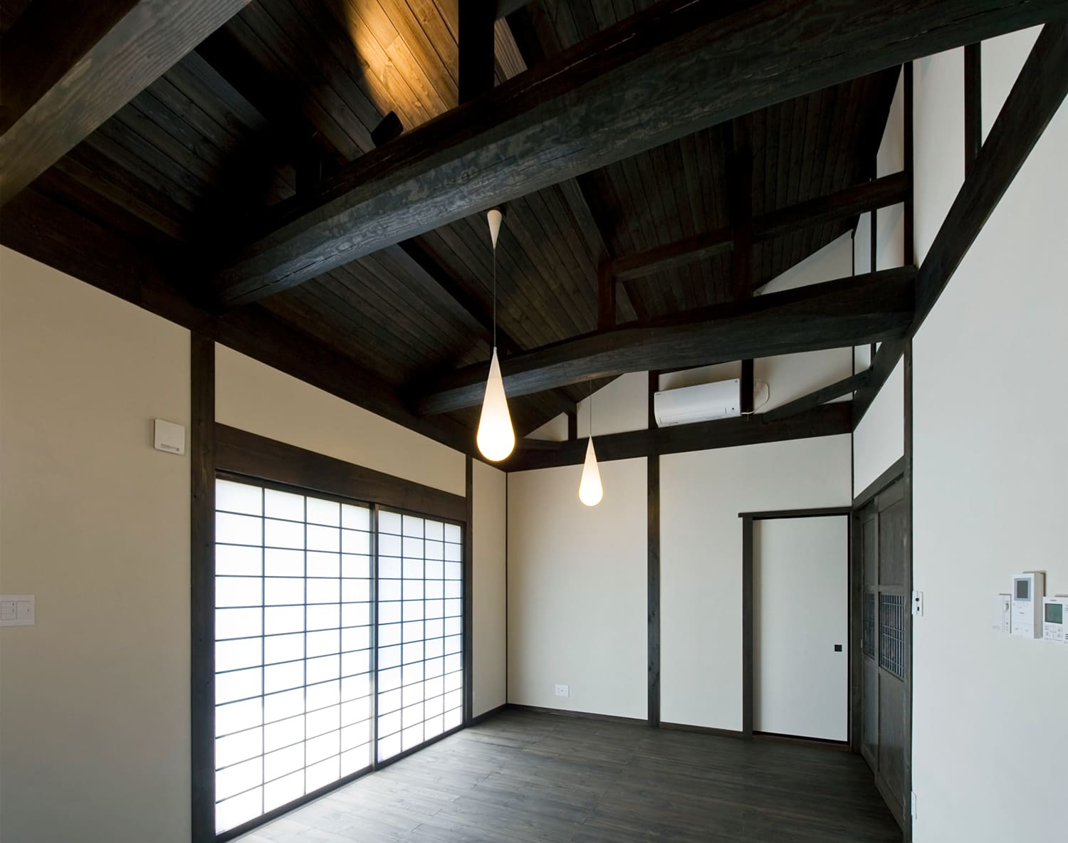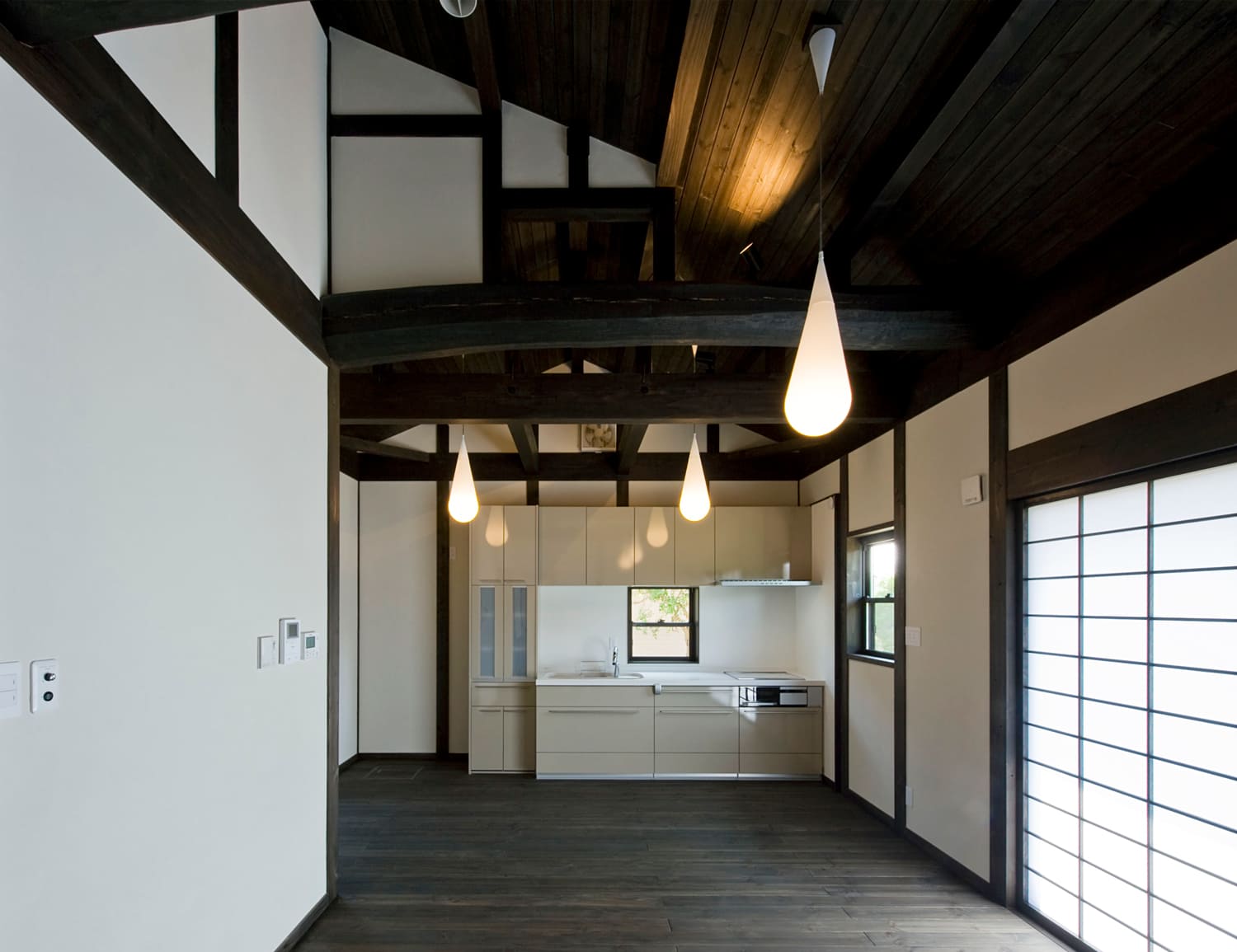 黒く艶めく太い梁や柱がもたらす、ゆるぎない安心感。そして、障子を通して届く柔らかな光が織りなす、美しい陰影。古き良きものの価値を大切に受け継ぎながら、キッチンやバスルームには最新の機能を取り入れ、心から安らげる、新しい「和」の暮らしを形にしました。