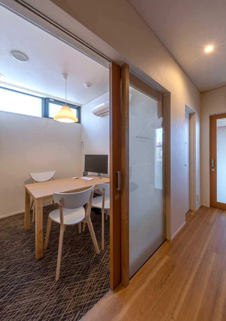 【診察室】光を通す、柔らかな仕切り。プライバシーと、心地よい繋がりを両立する空間