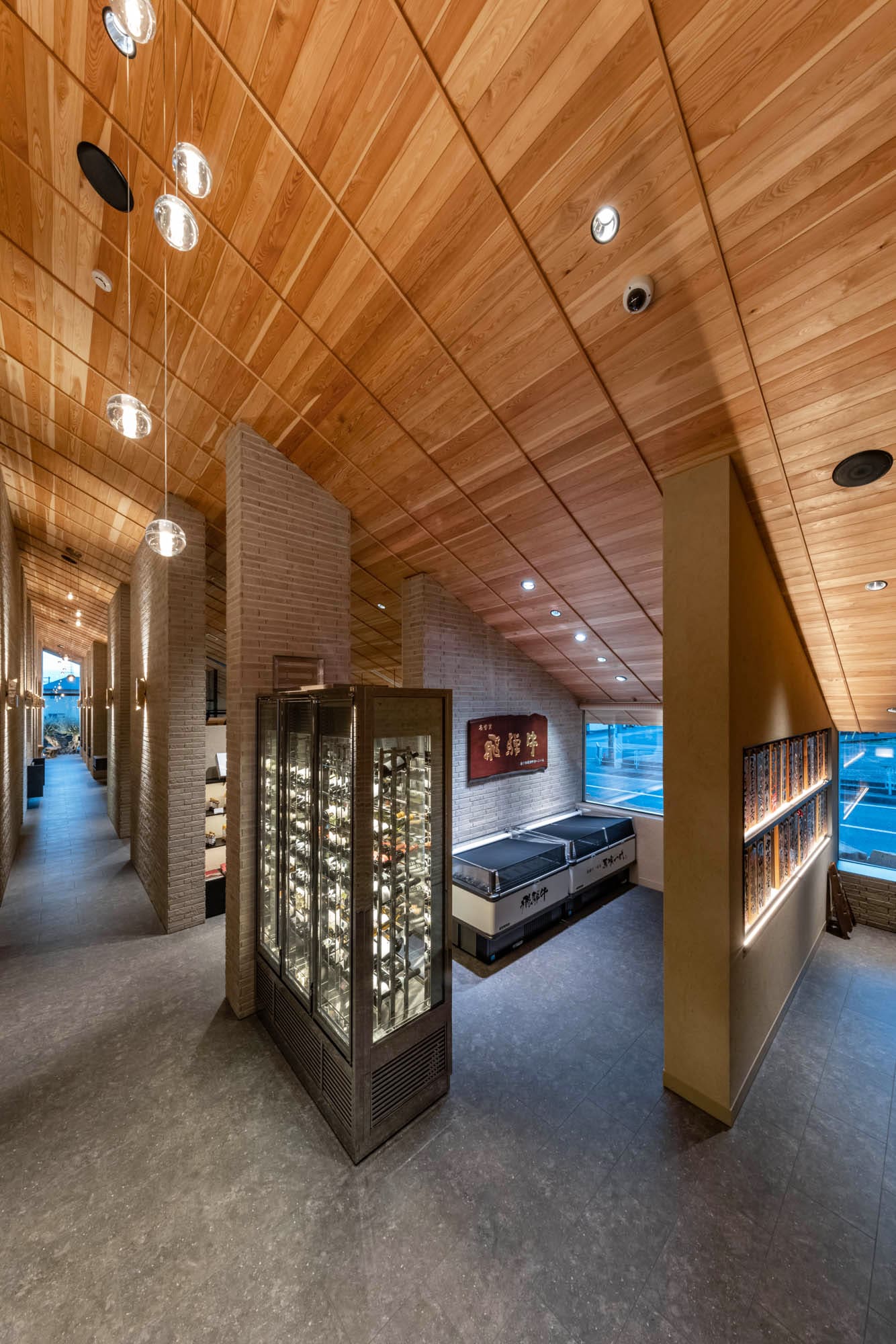 高い天井、リズミカルに並ぶ柱、そして壁や床を優しく照らし出す、計算され尽くした照明。