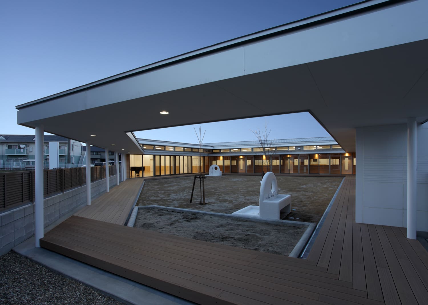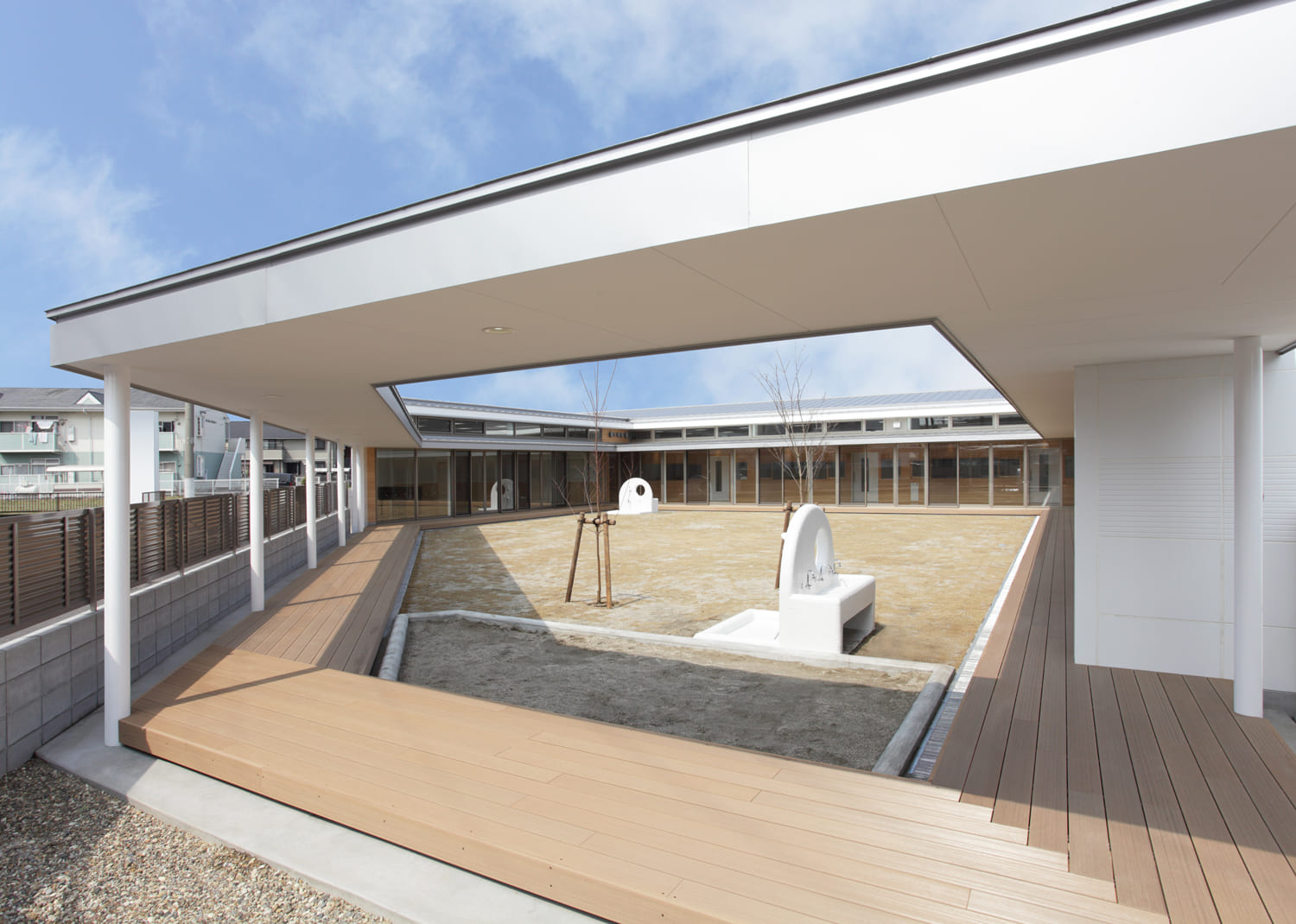 すべての部屋がこの中庭に面しているため、大人はいつでも安心して、子どもたちの様子を見守ることができます。