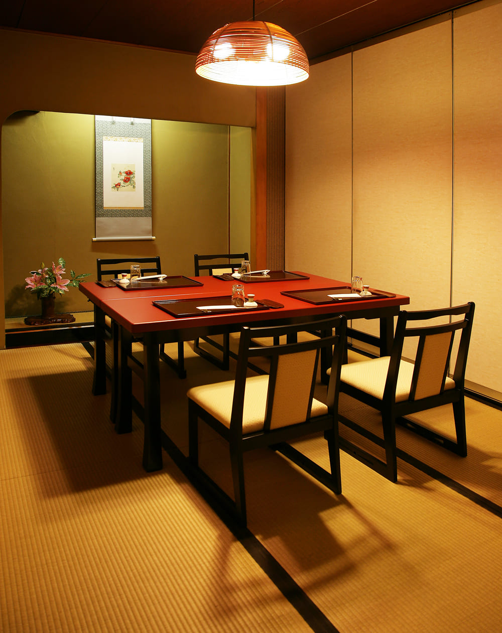 大切な人と、周りを気にせず、ゆっくりと語らいたい。そんな時にふさわしい、こぢんまりとした個室です。掘りごたつ式のテーブルなので、畳の上でも楽に過ごすことができ、障子や丸い照明からこぼれる柔らかな光が、親密な雰囲気を演出します。まるで隠れ家のような、心から寛げるこの空間は、日々の暮らしの中に「特別な時間」をもたらしてくれます。